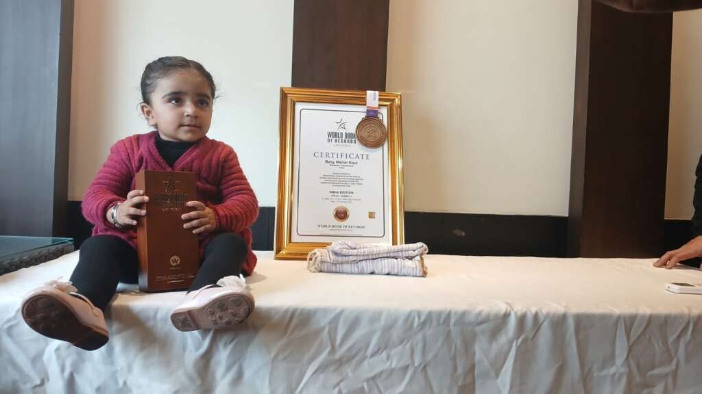 हल्द्वानी: बेबी मेहर कौर ने बनाया विश्व रिकॉर्ड, एक वर्ष 7 माह की आयु में रचा इतिहास