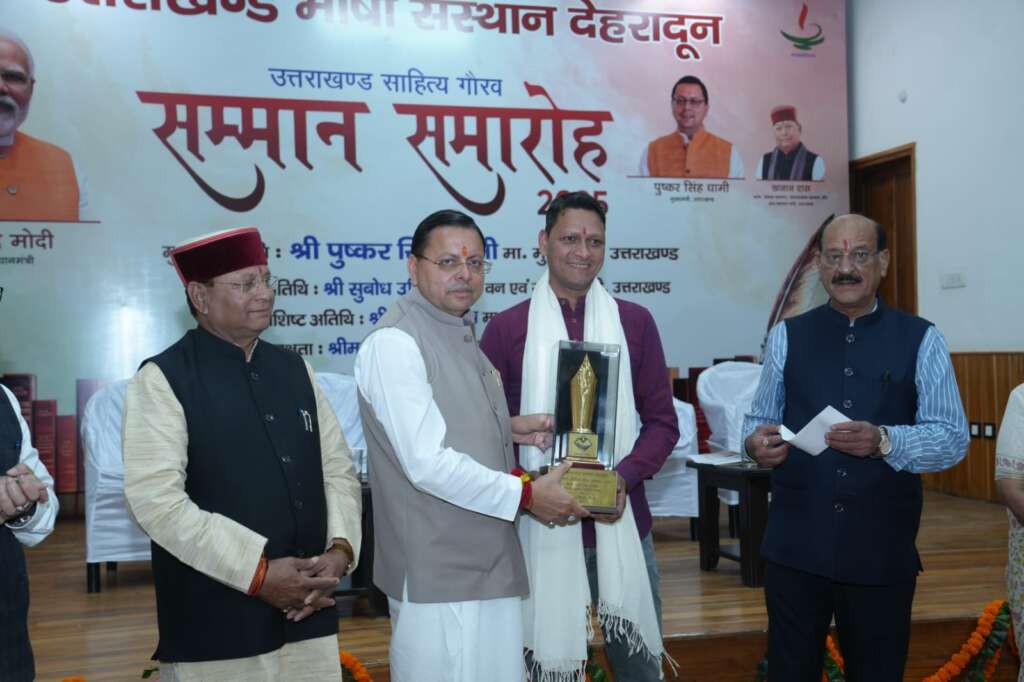 30 मार्च 2026 को मुख्य सेवक सदन, गढ़ी कैंट रोड देहरादून में आयोजित इस समारोह में मुख्यमंत्री पुष्कर सिंह धामी ने भाषा मंत्री श्री खजान दास एवं वन एवं स्वास्थ्य मंत्री श्री सुबोध उनियाल की उपस्थिति में राजेंद्र ढैला को अंगवस्त्र, प्रतीक चिन्ह, प्रशस्ति पत्र और नगद पुरस्कार भेंट कर सम्मानित किया।