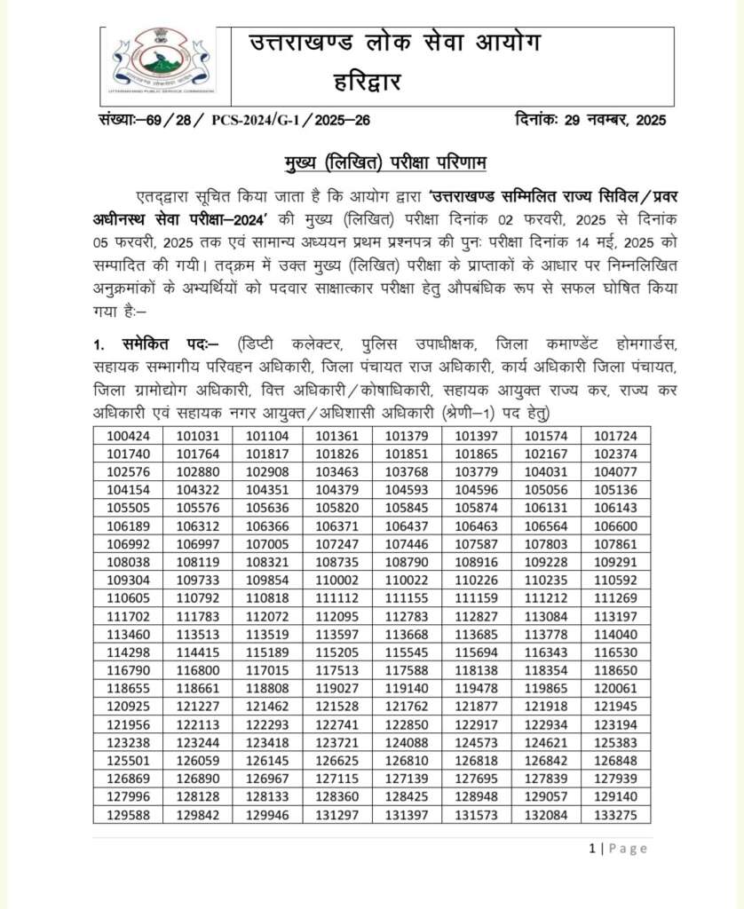आयोग ने सूचित किया है कि उत्तराखंड संयुक्त राज्य सिविल/प्रवर अधीनस्थ सेवा परीक्षा 2024 की मुख्य परीक्षा 2 फरवरी 2025 से 5 फरवरी 2025 तक आयोजित की गई थी। इसके अलावा, सामान्य अध्ययन का पहला प्रश्नपत्र 14 मई 2025 को दोबारा लिया गया था।